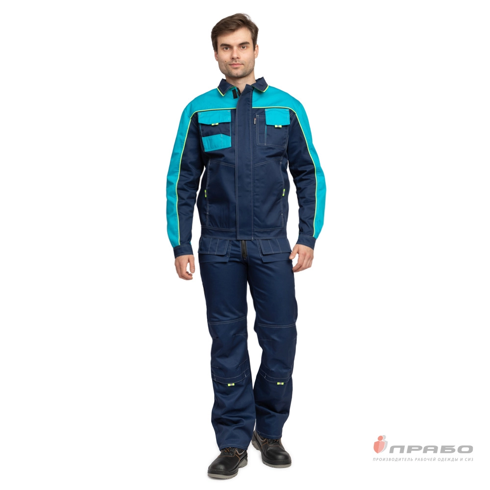 Костюм мужской "Бренд 2" тёмно-синий/бирюза (куртка и полукомбинезон)