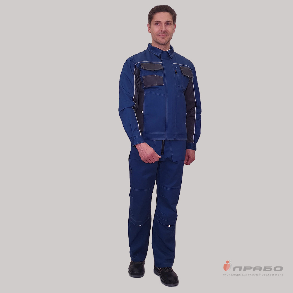 Костюм мужской "Бренд 2 2020" синий/тёмно-серый (куртка и полукомбинезон)