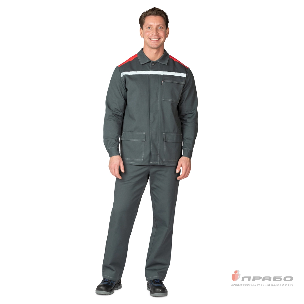 Костюм мужской "Оптимал 1" тёмно-серый/красный (куртка и брюки)