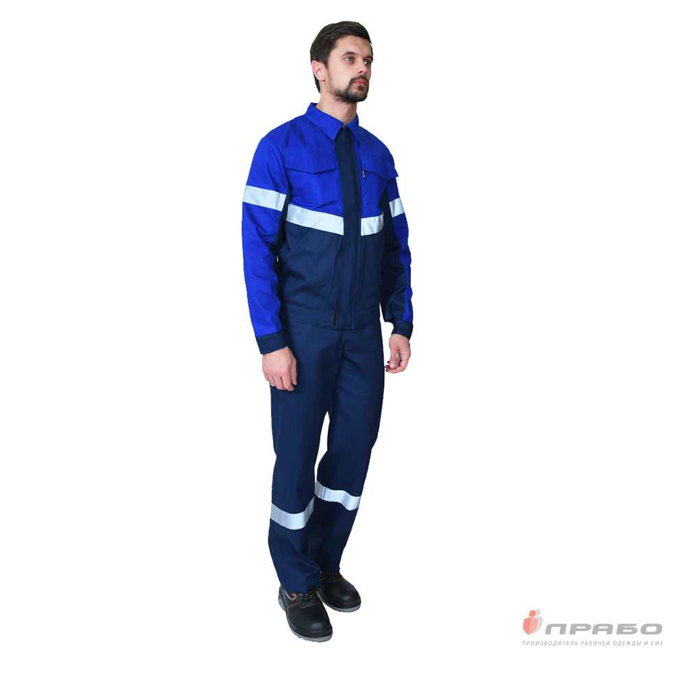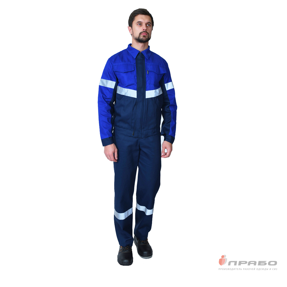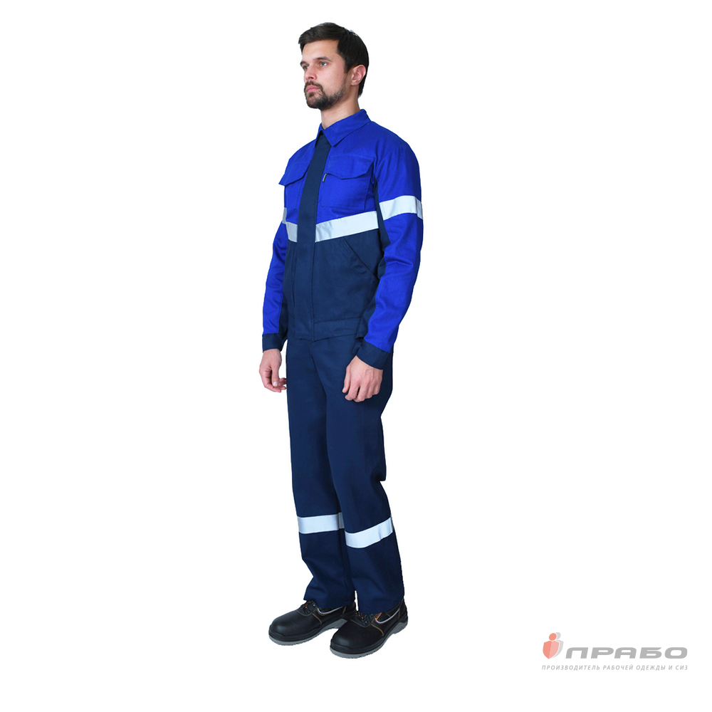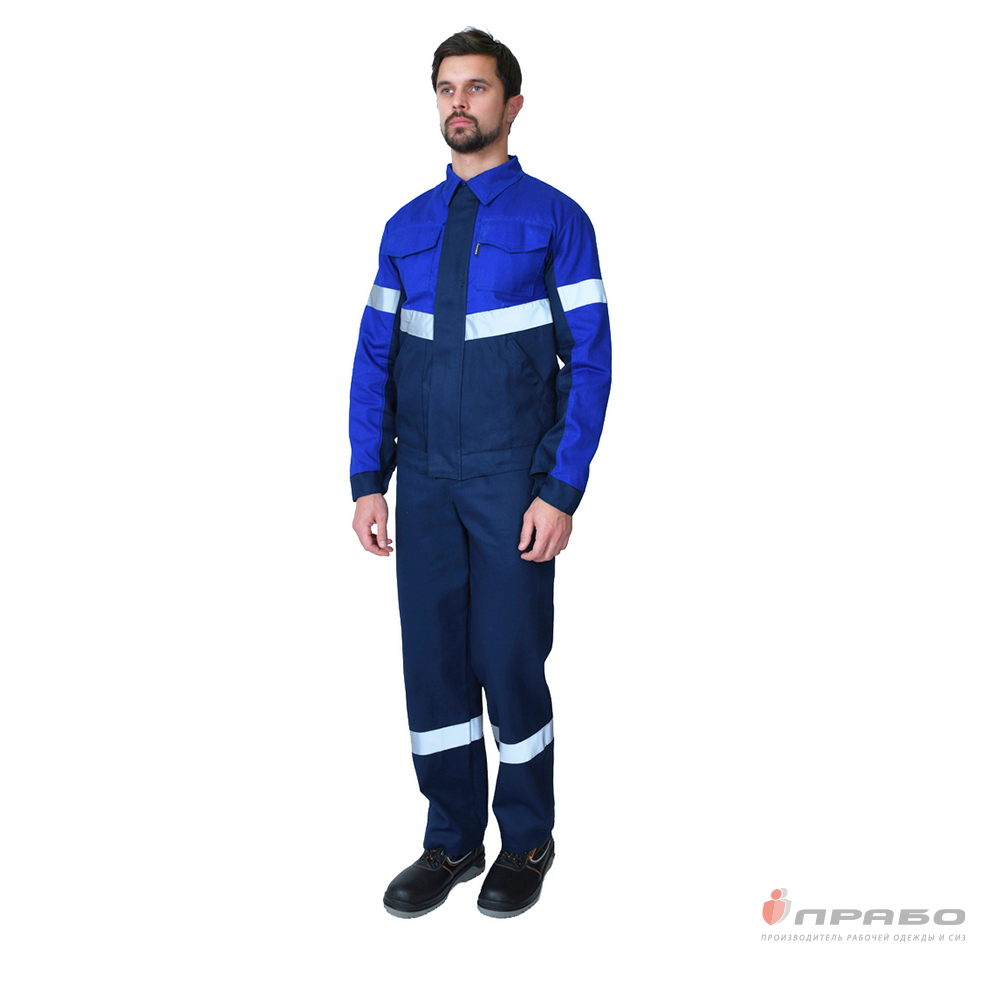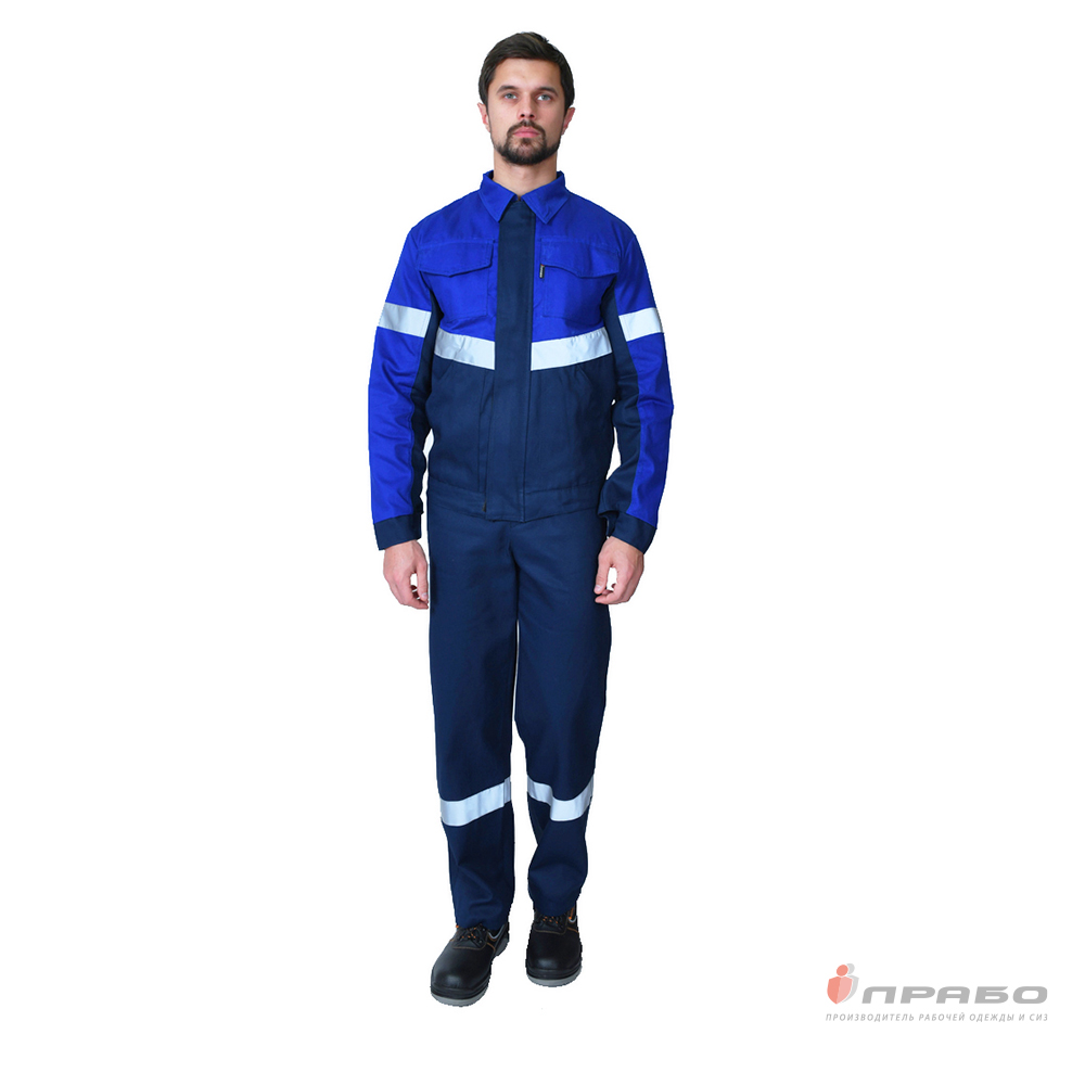 Костюм мужской "Вираж 2" тёмно-синий/василёк (куртка и полукомбинезон)