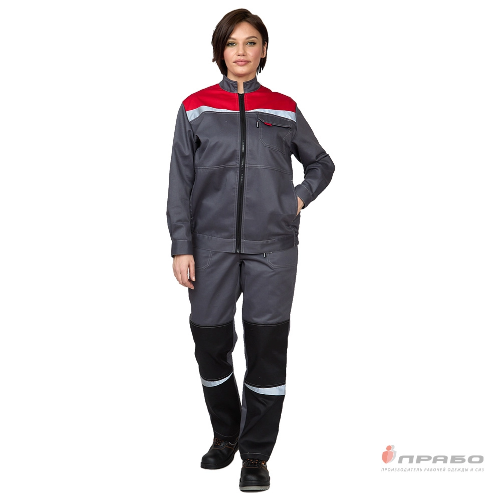 Костюм женский "Профессионал" серый/красный/чёрный (куртка и брюки)