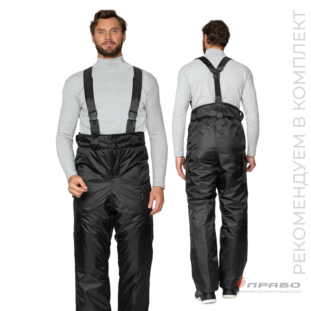 Брюки мужские утеплённые "Альфа" со съемными бретелями на фастексах чёрные