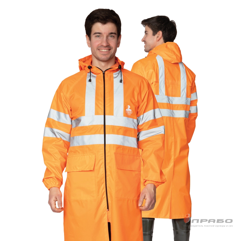 Плащ влагозащитный "Тайфун СОП" оранжевый 3 класса сигнальной защиты