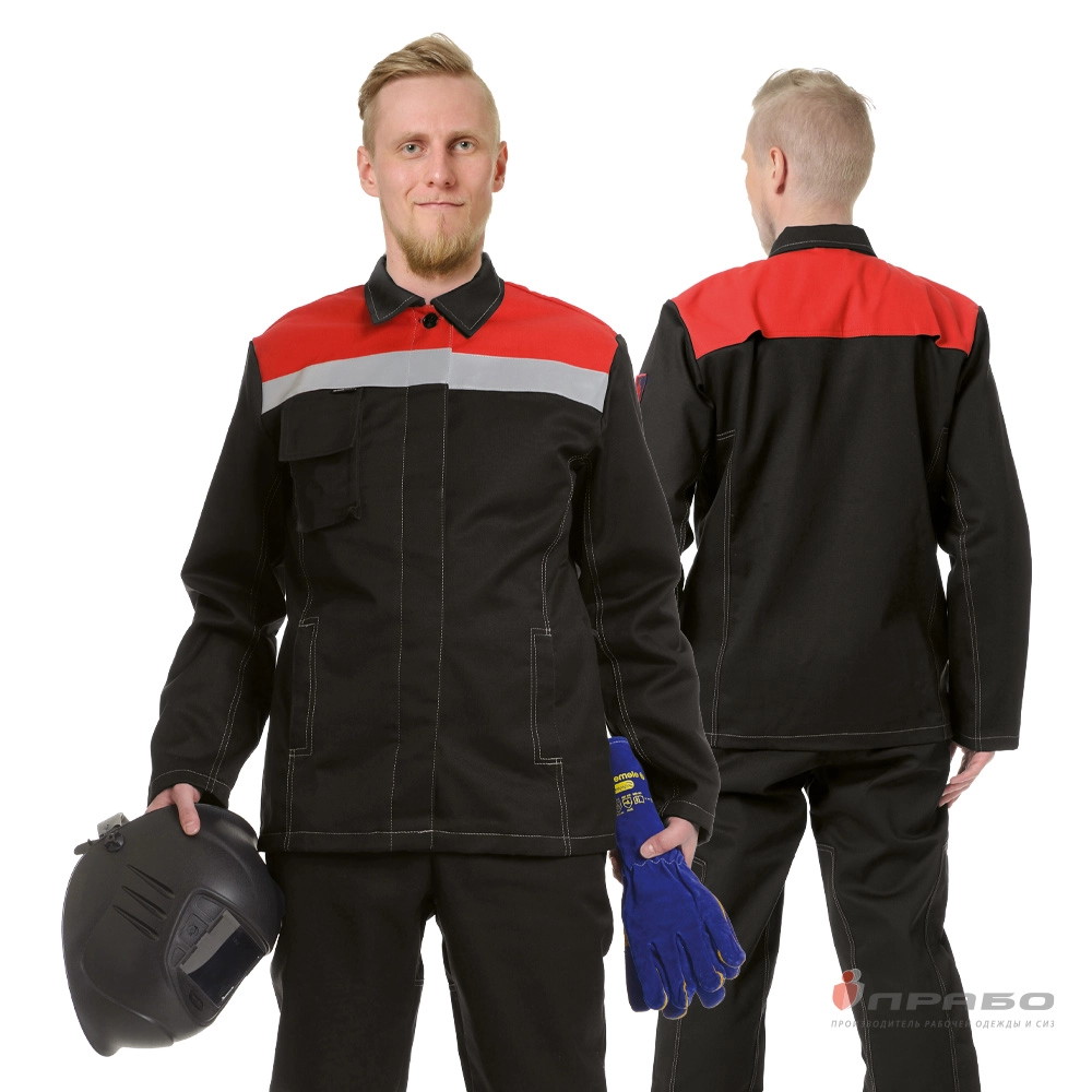 Костюм огнестойкий 1 класса защиты х/б с ОП пропиткой чёрный/красный (куртка и брюки)