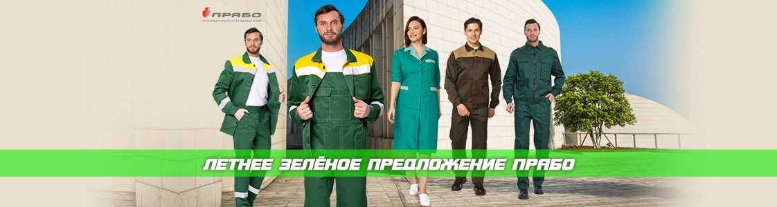 Рассмотрим летнее предложение зелёных рабочих костюмов из ассортимента «ПРАБО».